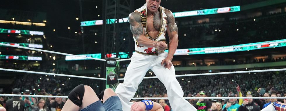 Pero fue The Rock el que miró a los ojos a John Cena para recordar su enfrentamiento tanto en el evento estelar de WrestleMania 28 como 29. Ambos se pararon en el centro del ring, se dijeron de todo (más bien The Rock a Cena) y cuando parecía que éste iba a sacar de la ecuación a The Rock, fue éste el que utilizó su golpe más letal para dar al traste con las ilusiones de los fanáticos que pedían a Dwayne Johnson contra la lona.